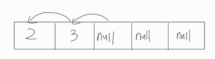 아니다. 비어있는 인덱스는 존재해서는 안 된다. 그렇기 때문에 2,3을 한 칸씩 앞으로 당겨와야 한다.