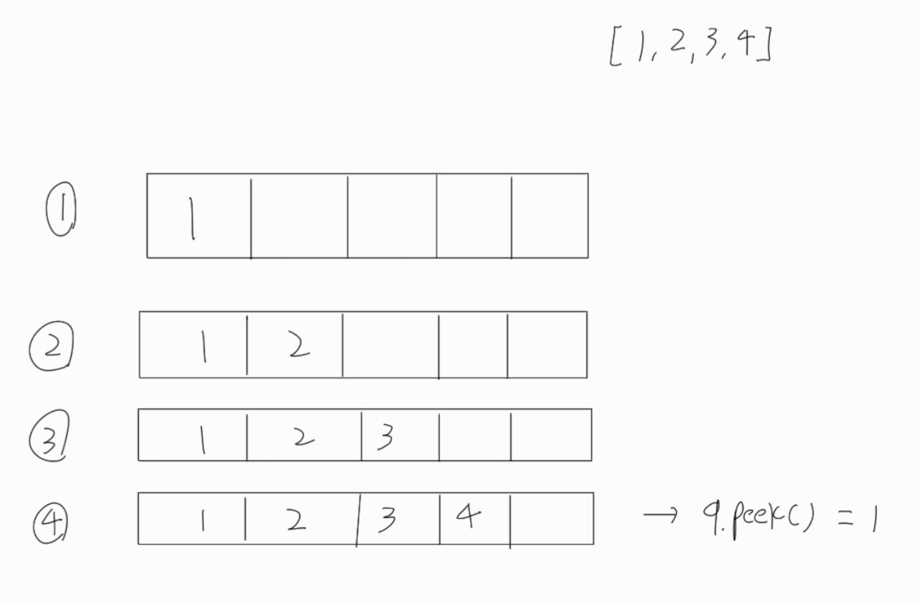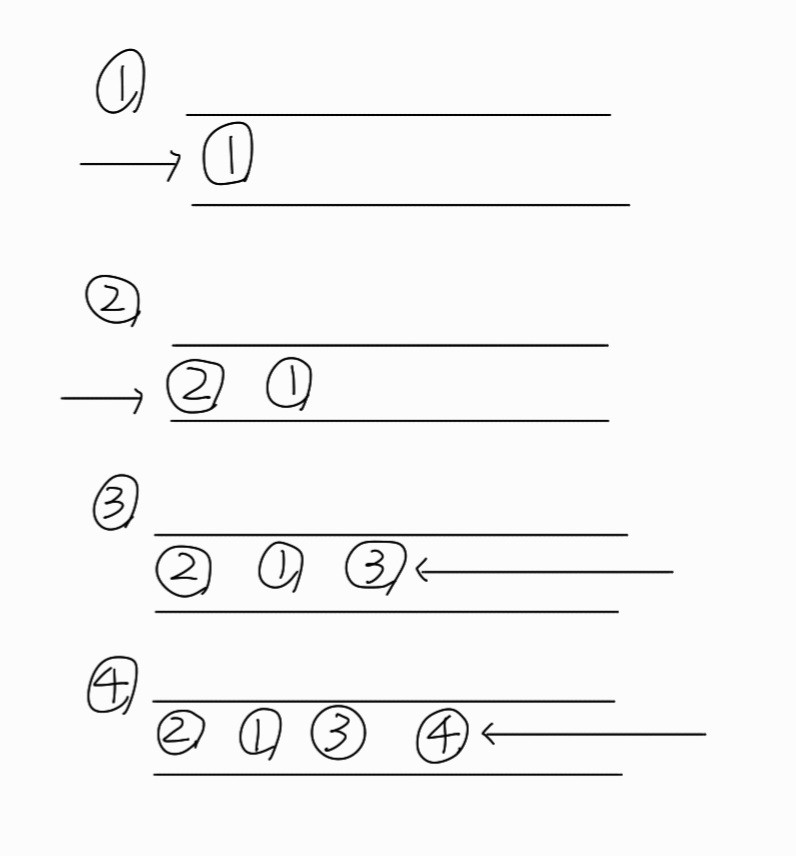 1, 2, 3, 4를 차례대로 삽입했을때 원형큐의 모습이다. 여기까지는 이해하는 데 어려움이 없을 거라 생각한다.