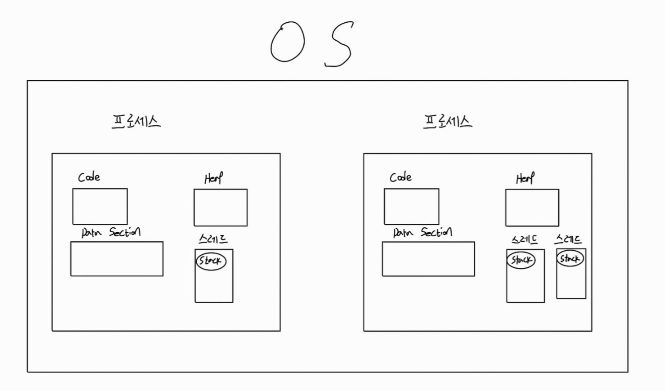 그림을 통해 스레드와 프로세스의 메모리 공간에 대해 살펴보자