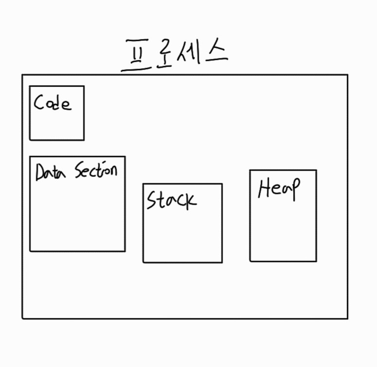 프로세스는 실행 환경과 자원을 제공하는 컨테이너 역할을 한다. 예를 들자면, 음악 듣기라는 작업단위를 프로세스가 제공해 주고, 스레드가 음악 실행, 가사 가져오기와 같은 세부적인 작업을 진행한다. 프로세스는 별도의 메모리 공간을 가지고 있어, 프로세스끼리 전혀 무관하다. 즉, 하나의 프로세스가 오작동을 한다면, 다른 프로세스에 영향을 미치지 않는다는 말이다.