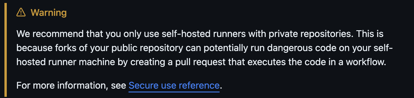 Self-hosted를 사용하는 환경에서는 private Repository를 권장한다.