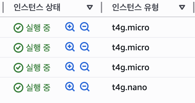 (Nginx는 nano, 나머지 서버들은 micro로 띄워놨다)