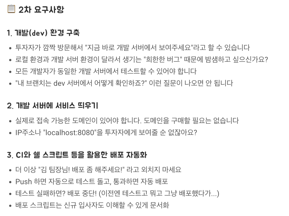 2차 요구사항은 그렇게 어렵진 않았다. 나를 제외한 피드줍줍의 백엔드 팀원들은 뛰어난 개발 실력을 가지고 있다. 2차 요구사항에 명시되어 있는 CI/CD 파이프라인을 팀원 전부 다 경험해 봤고, 구현하는 데 그리 오래 걸리지 않을 것 같았다. 그래서였을까? 주어진 테스크가 너무 작고, 시간이 많이 남을 것 같아 핵심 기능 외의 추가 기능개발을 하기로 결정했었다.