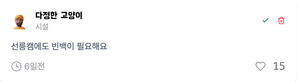 좋아요를 상당히 많이 받은 건의 사항 중 하나다. 해당 피드백의 완료 조건이 뭘까? 코치님에게 해당 의견을 전달하기? 선릉캠퍼스에 빈백이 생기는 시점? 뭐랄까... 완료 버튼을 누르기 상당히 애매했다. 그리고, 위와 비슷한 경우가 많이 있었다.
