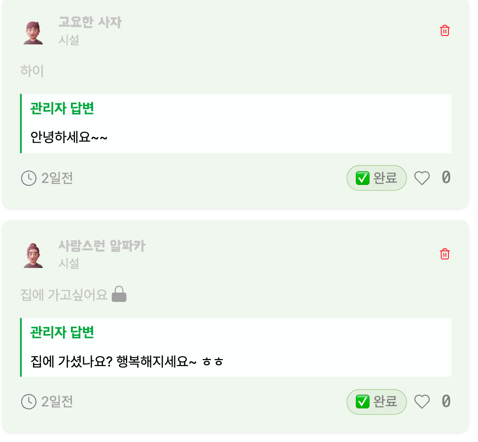 - 관리자 답글 기능
