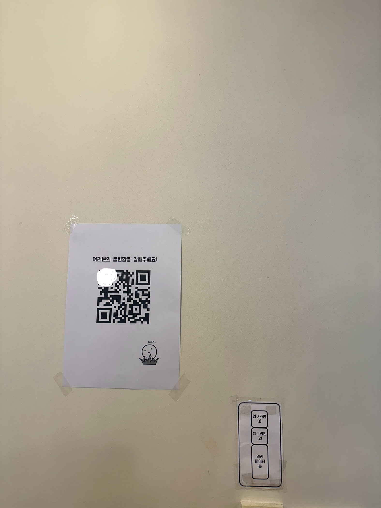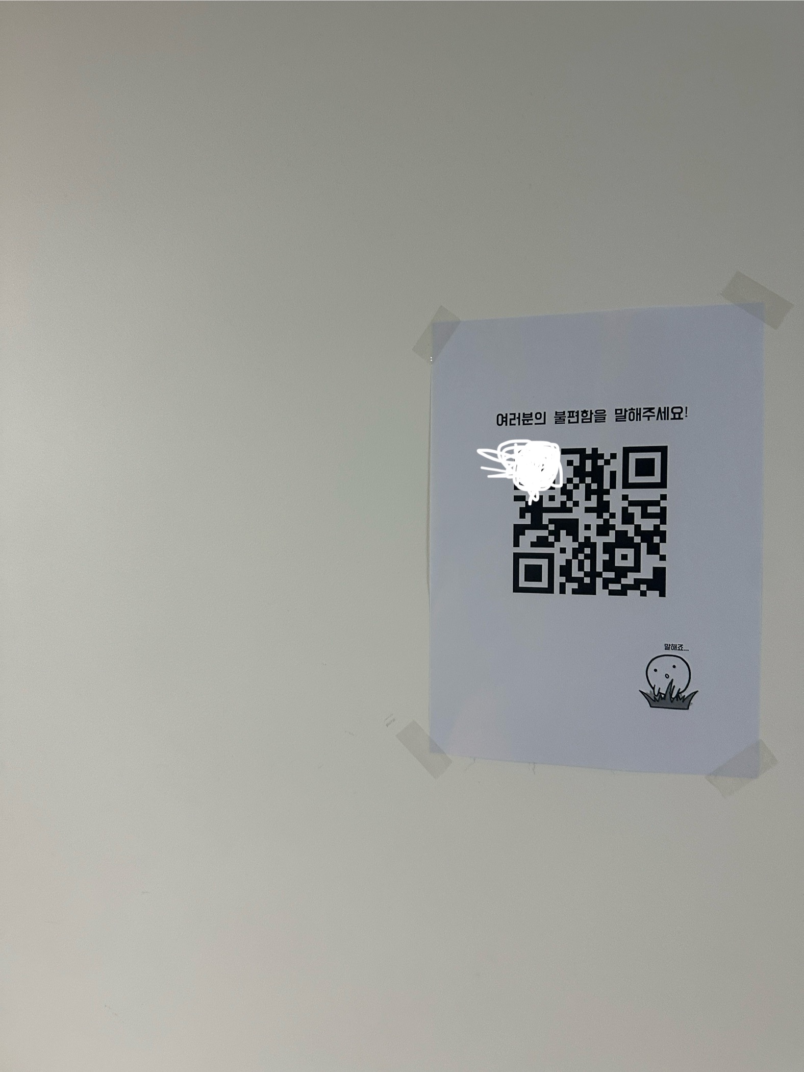팀원 모두 다 만족하는 UI/UX 수정이었고, 피드줍줍이 어떤 가치를 제공하는지 보다 명확하게 알 수 있게 변했다고 생각한다. 이후에 빠르게 사용자 피드백을 받아보고 싶어, QR코드를 만들어 크루들이 사용할 수 있도록 캠퍼스 곳곳에 붙여놨다.