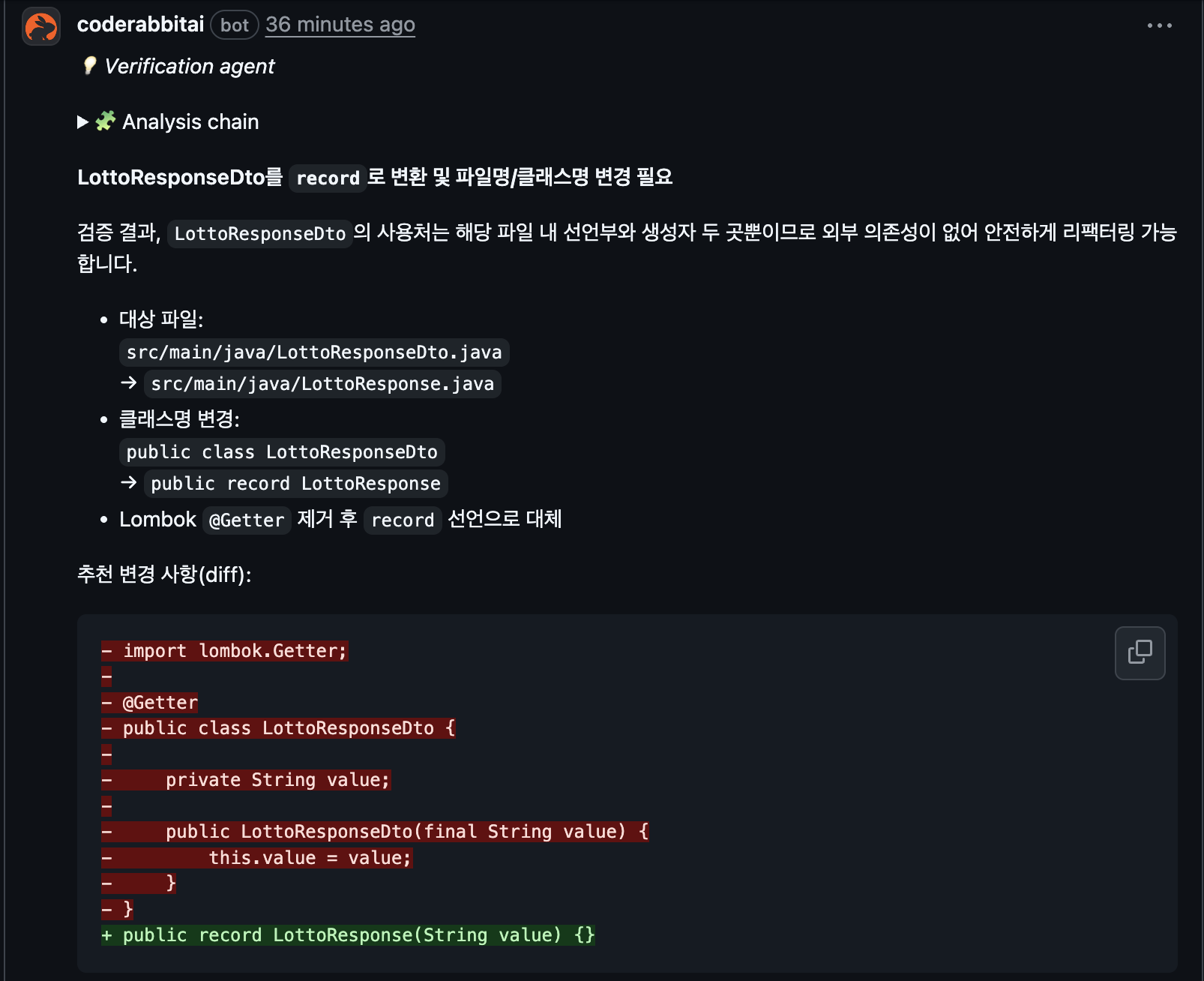 아직은 테스트 단계이기에 도입 결과가 어떤지는 모르겠습니다. 과거에 우테코 Level2에서 코드레빗을 사용했을 때는 말이 너무 많아 불편했었는데, 팀 프로젝트에서는 꽤나 유용하게 쓰일 것 같다고 생각합니다. 우선은 한 달 정도 코드 레빗을 사용해본 후, 팀원들에게 사용 후기를 물어볼 생각입니다.