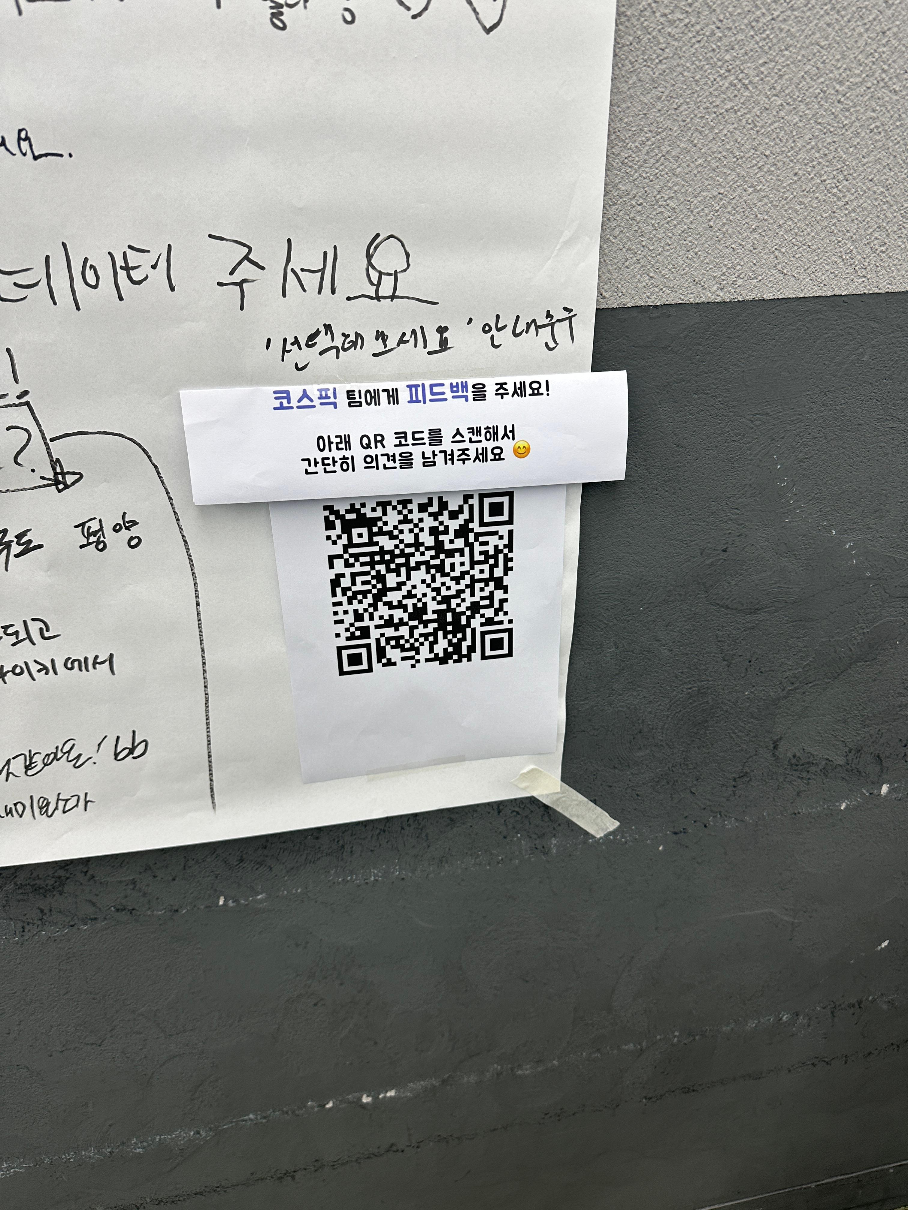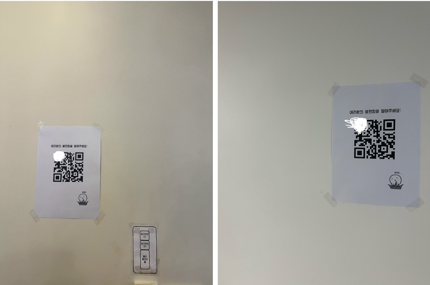 그중 가장 먼저 한 일은 캠퍼스에 대해 불편함/피드백을 작성할 수 있는 QR 코드 붙이기였습니다.