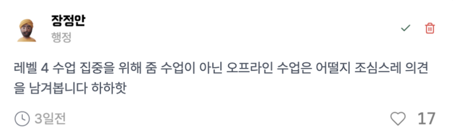 나가아 저희는 추가 타겟층을 모색하고 있었는데요, 우테코 강의 시간에 비교적 가벼운 건의사항은 피드줍줍을 이용할 수 있겠다는 생각이 들었고, 백엔드 코치님들께 피드줍줍 사용을 건의해 보았습니다.