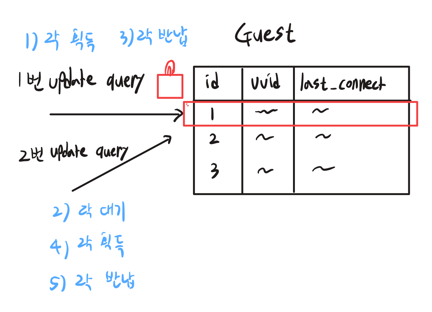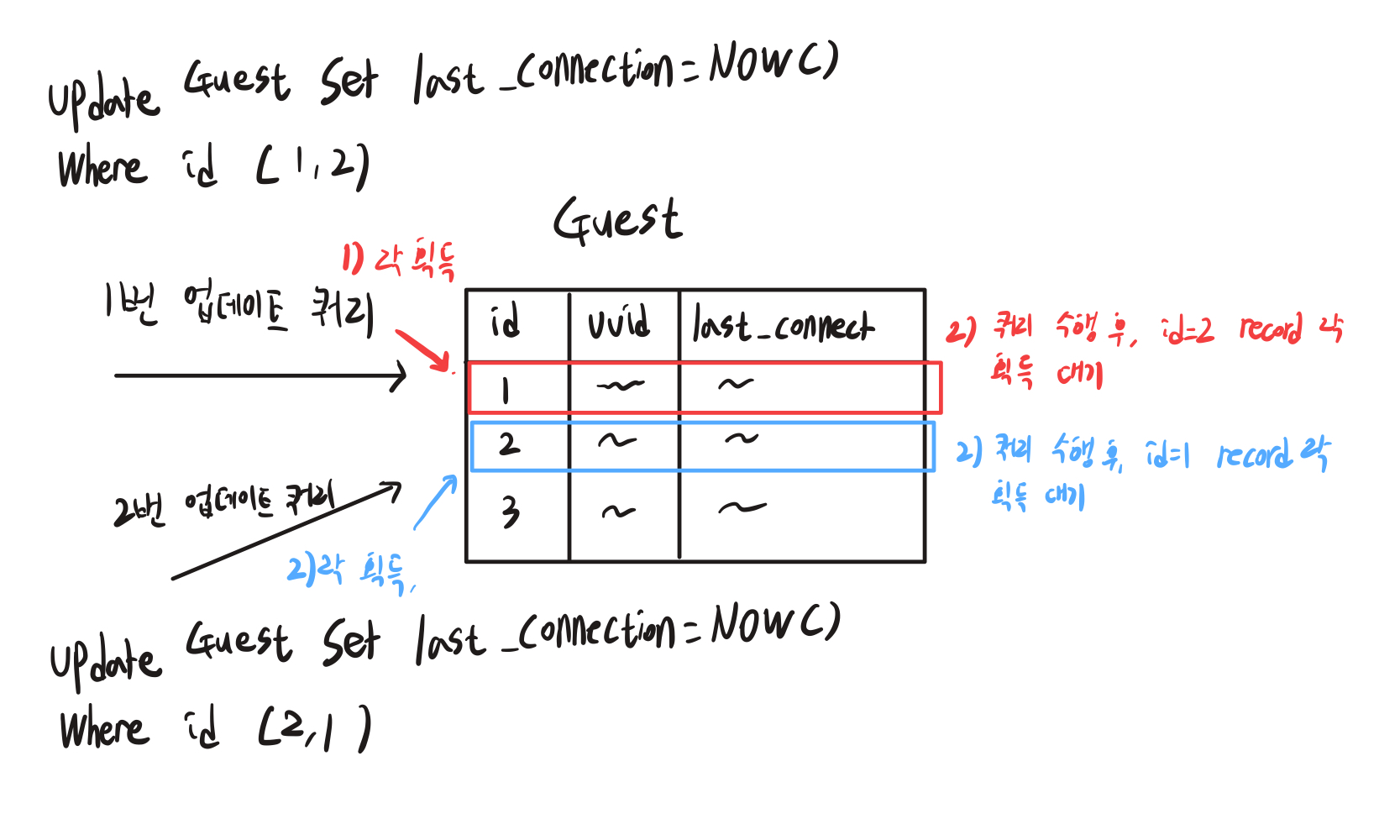 Guest 테이블에 last_connection을 업데이트하는 쿼리가 동시에 발송되었다고 가정을 해보겠습니다.