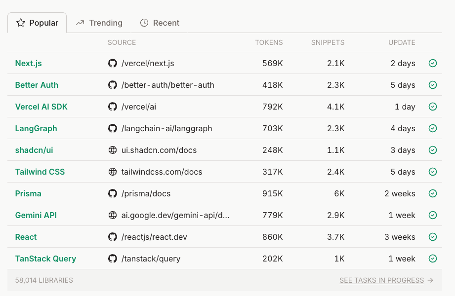 왜 최신 데이터를 못 가져올까 하고 찾아본 결과 context7에서 한 달 전 마지막 업데이트를 진행했더라고요.