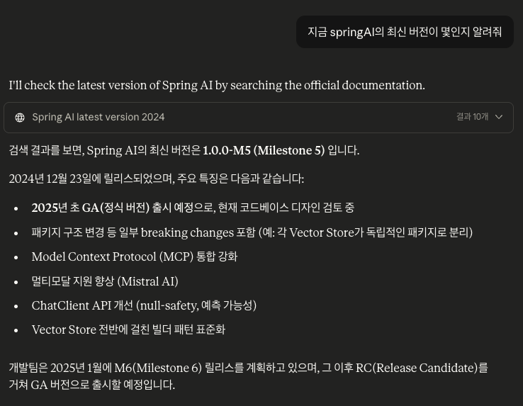 위와 같이 보다 정확한 최신 문서를 사용해 응답을 해주는 것을 확인할 수 있습니다.